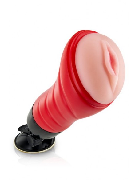 Ροδαλός κόλπος με ρυθμιζόμενη βεντούζα. Σφιχτό, ρεαλιστικό και πολύ μαλακό, αυτό το τέχνασμα από το Crazy Bull προσκολλάται σε οποιαδήποτε επίπεδη επιφάνεια για να σας δώσει τον καλύτερο αρσενικό αυνανισμό.